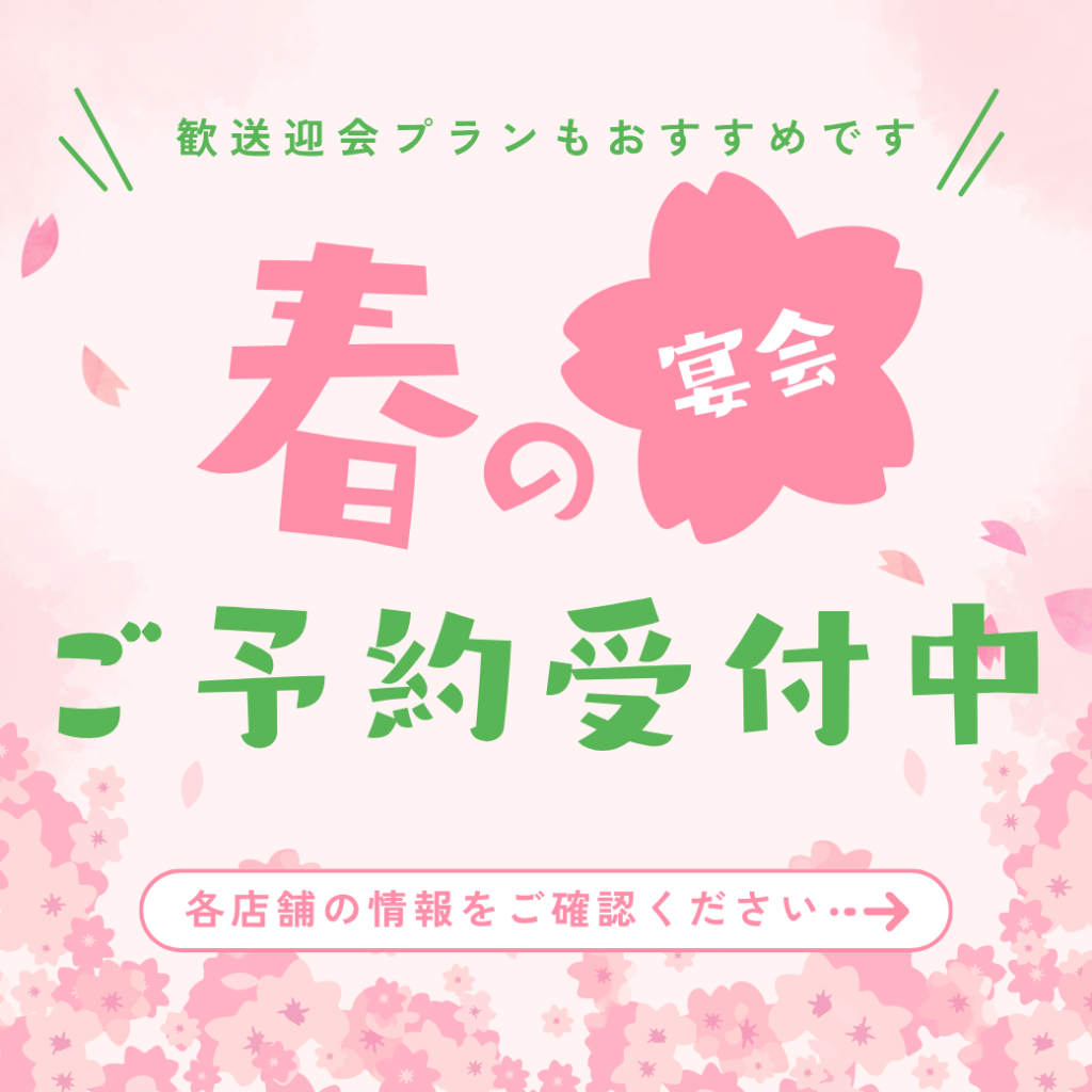 お仲間の門出や新たな出会いを祝うひとときを、ぜひ下記店舗でお過ごしください。