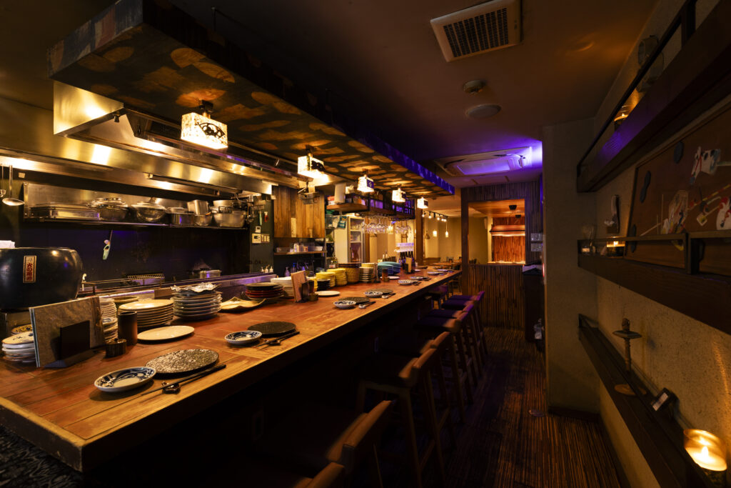 カウンターのお席はローカウンターとハイカウンター合わせて12席、